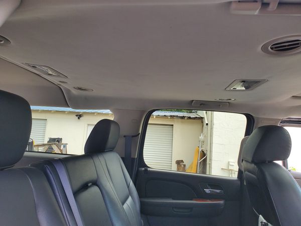 Popular domestic models like the Chevrolet Silverado, Ford F-150, and Dodge Ram 1500 often require headliner replacement due to the large surface area of the cabin roof and long-term exposure to heat. Full-size SUVs such as the Chevrolet Tahoe, GMC Yukon, and Ford Expedition frequently develop sagging headliners near rear A/C vents or dome lights, where moisture and airflow can loosen the fabric over time. Sedans like the Chrysler 300, Dodge Charger, and Chevrolet Impala also experience adhesive failure that leads to headliner separation, especially around the edges and pillars. Even vehicles like the Buick Lucerne, Pontiac G6, and Jeep Grand Cherokee are known to suffer from sagging headliners or water-damaged fabric due to sunroof leaks or faulty weather seals. Mid-size and compact SUVs like the Dodge Durango, Chevrolet Equinox, and Ford Escape often need headliner restoration as they age, particularly in models equipped with sunroofs or rear climate control systems.